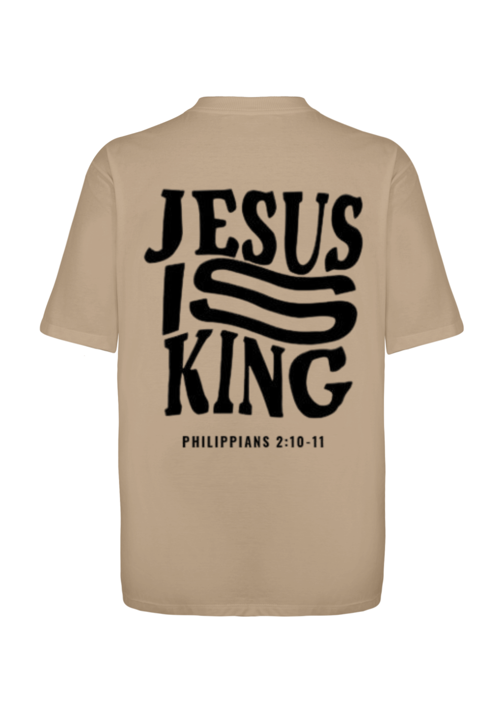 A Camisa JESUS IS KING é mais do que uma peça de roupa, é uma declaração de fé. Um lembrete de que acima de tudo, Cristo reina.